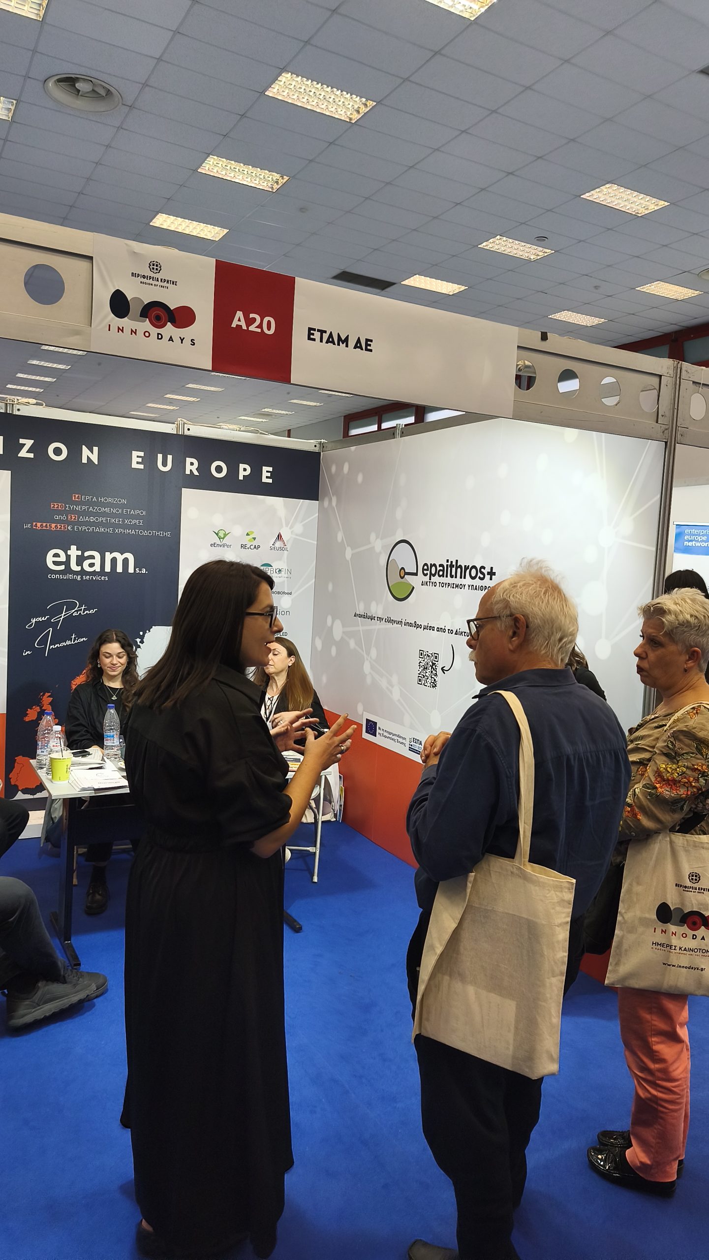 ETAM showcased 15 Horizon Europe projects, reflecting its active role in European research collaborations, as well as their initiative epaithros+ and Rural Greece Network, focusing on sustainable rural tourism and digital transformation.